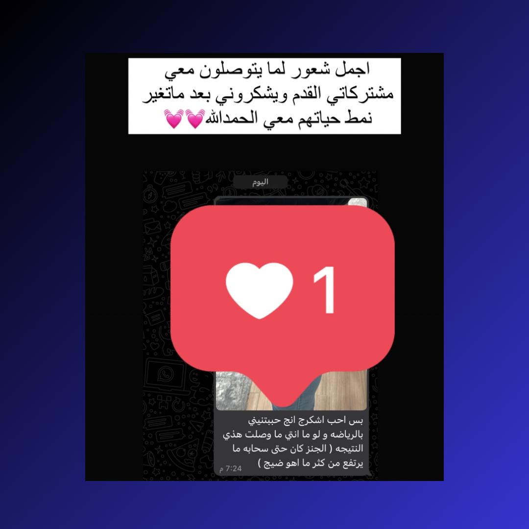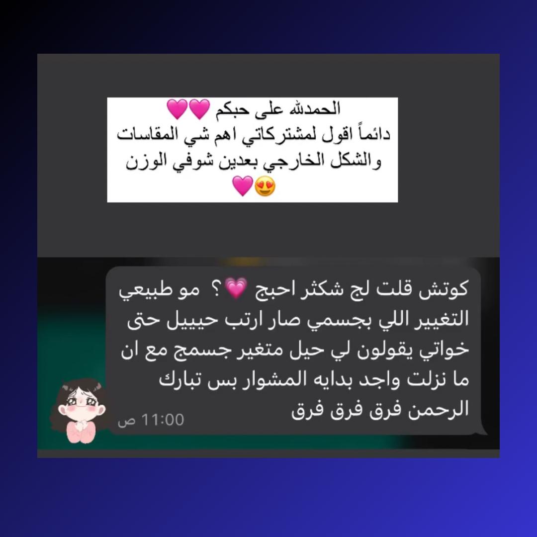 • النتائج قد تختلف من شخص لآخر بناءً على الالتزام بالخطة والتفاعل مع المدربة.